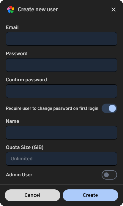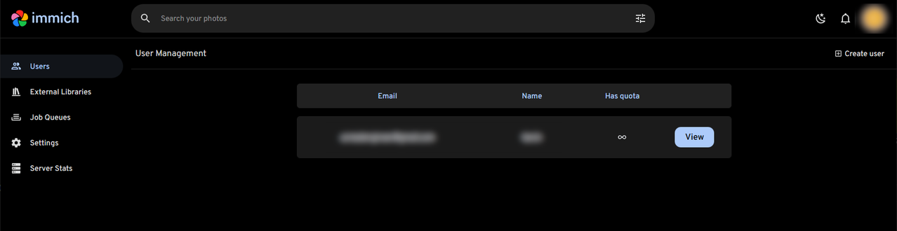 Immich initial setup and user creation