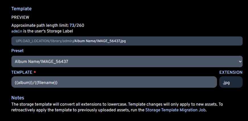 The only thing I don’t like about the Storage Template is that this is seemingly the one function that can’t be automated in Immich. I’ve seen a number of people posting about this on Reddit and on their Github and Discord so there is definitely a demand for this. Nextcloud’s internal file scanner has the ability to trigger when detecting changes to a file system after editing a config file, so I know this can be done. But in the meantime running the job manually from the web browser isn’t the end of the world since it really does only take a few moments of my time. I can live with that.