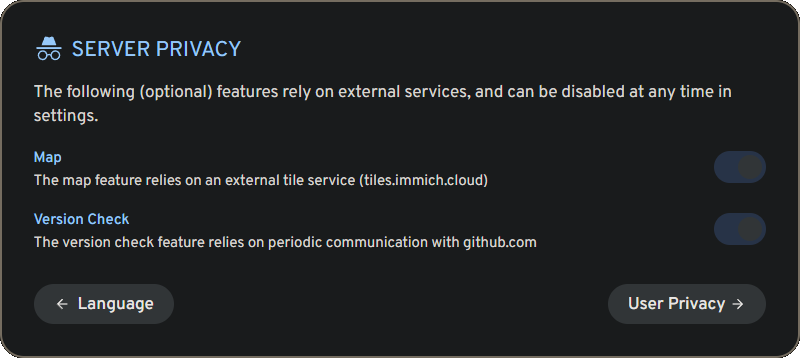 With Immich running it was time to move to the web UI for user account creation, configuration, and media dumping.